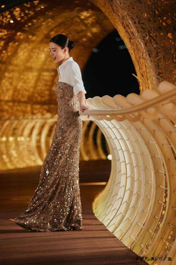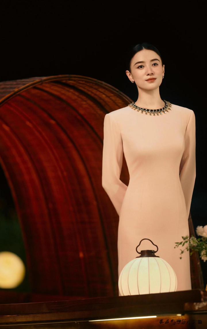 宋佳央视中秋晚会美照, 一袭粉色连衣裙气质端庄明艳动人!